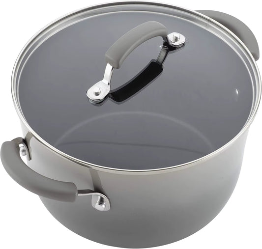 Brights Nonstick Cookware Pots and Pans Set, 14 Piece, Sea Salt Gray