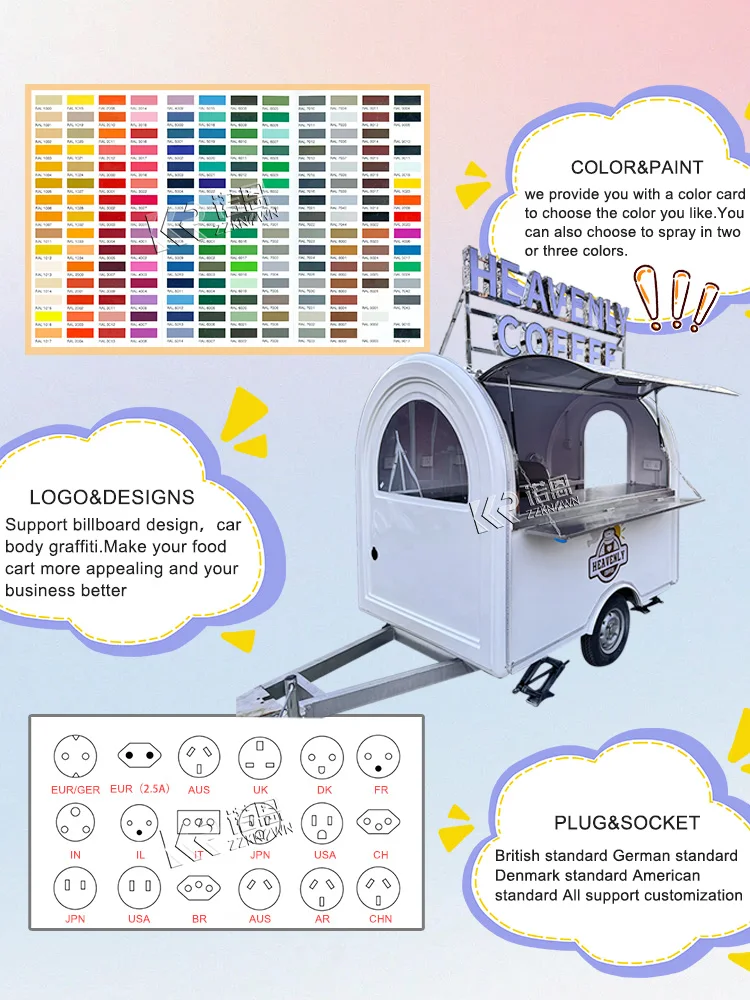 Mobile Kitchen Snowcone Trailer Bubble Waffle Cart Hot Dog Stand Small Round Food Truck Trailermobile ice cream food cart for sale features (support customization)
