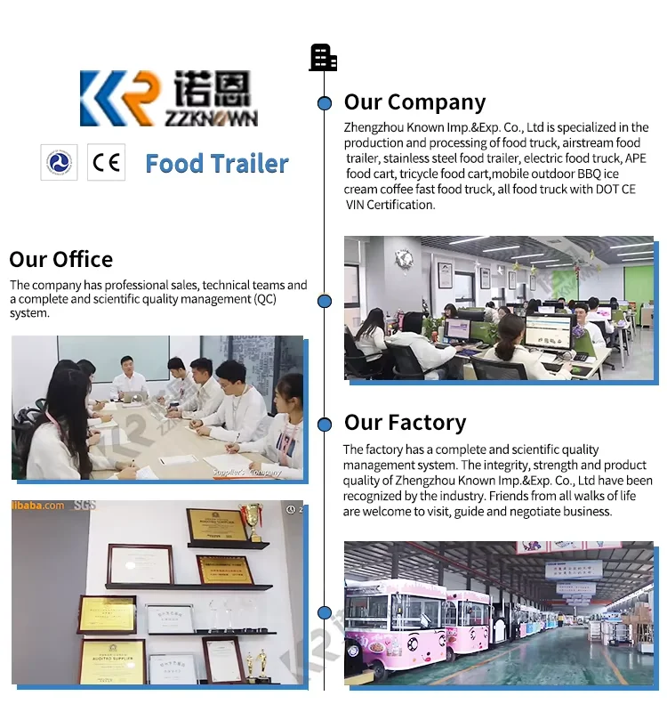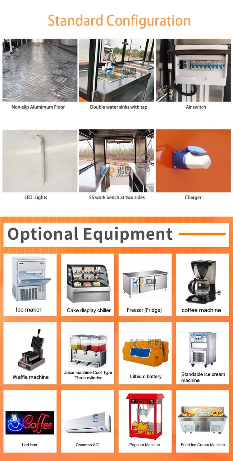 Our company specializes in producing all kinds of taco truck, ice cream truck, well-equipped food truck equipment, hot dog carts, lunch truck, electric mobile food carts and other machinery. With leading technology, all of our products comply with international quality standards, are certified by CE, ISO, NSF, SGS, DOT, etc., and are appreciated worldwide.FAQ