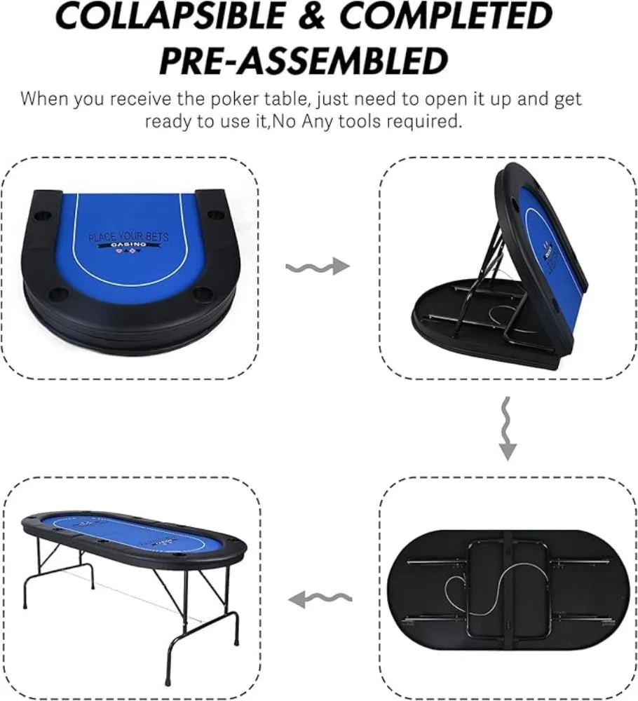 - ♠No Assembly Required: When you receive the poker table, just need to open it up and get ready to use it,No Any tools required.Easy to use.