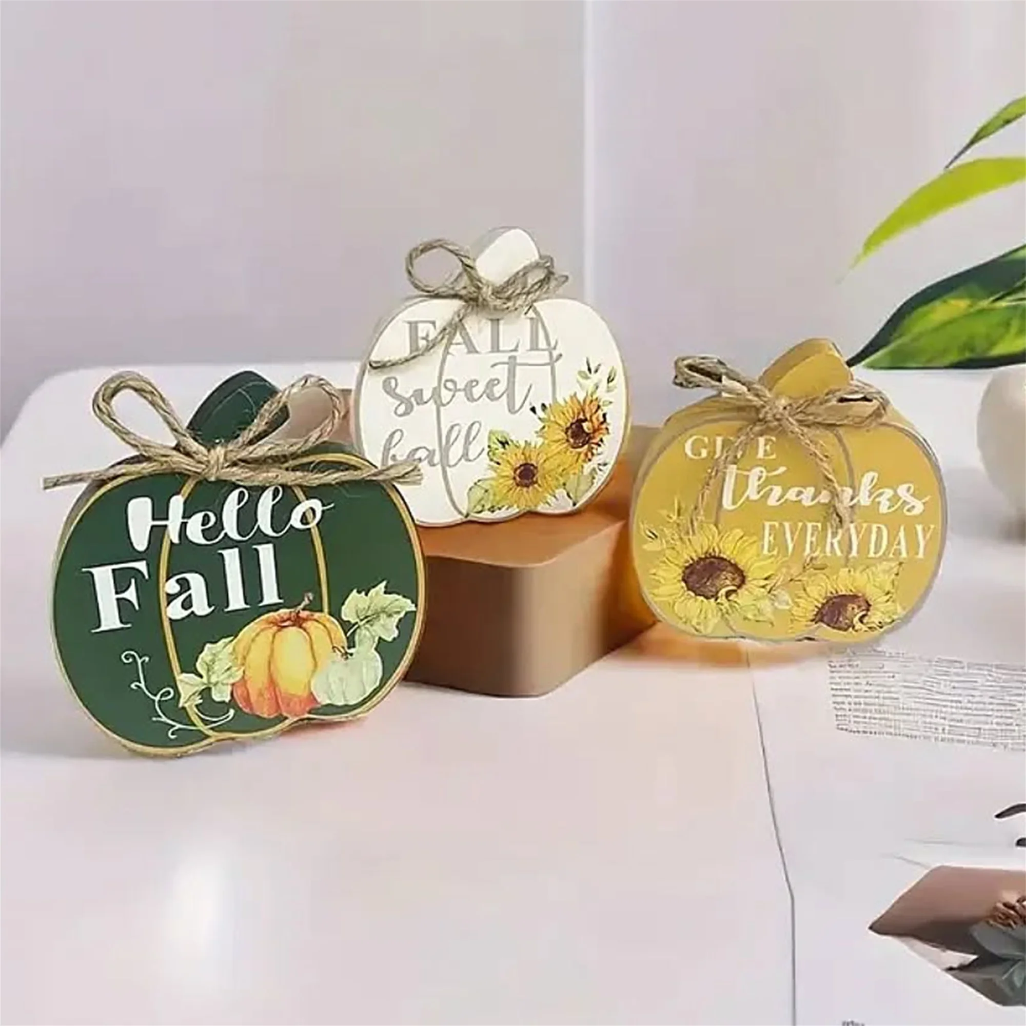 3pcs Fall Decor, Pumpkin Letters Sunflower Wooden Table Decor Desk Ornament Thanksgiving Decoration
